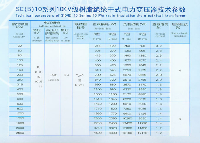 產品名稱:SC(B)10系列10KV級樹脂絕緣干式變壓器